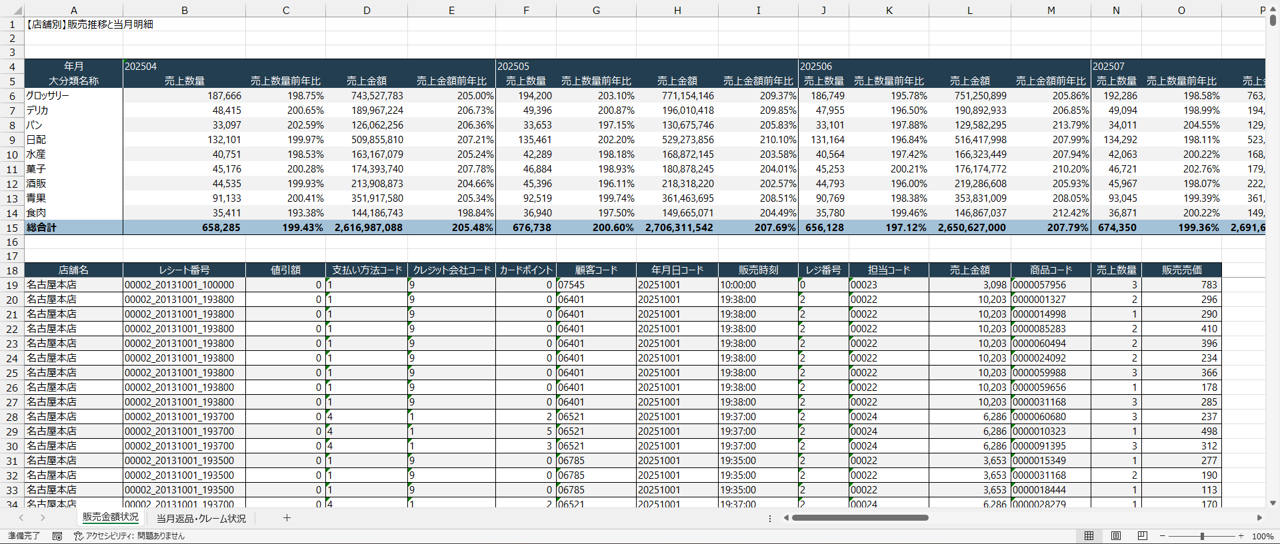 → 売上集計から「気になる箇所の売上明細」を確認