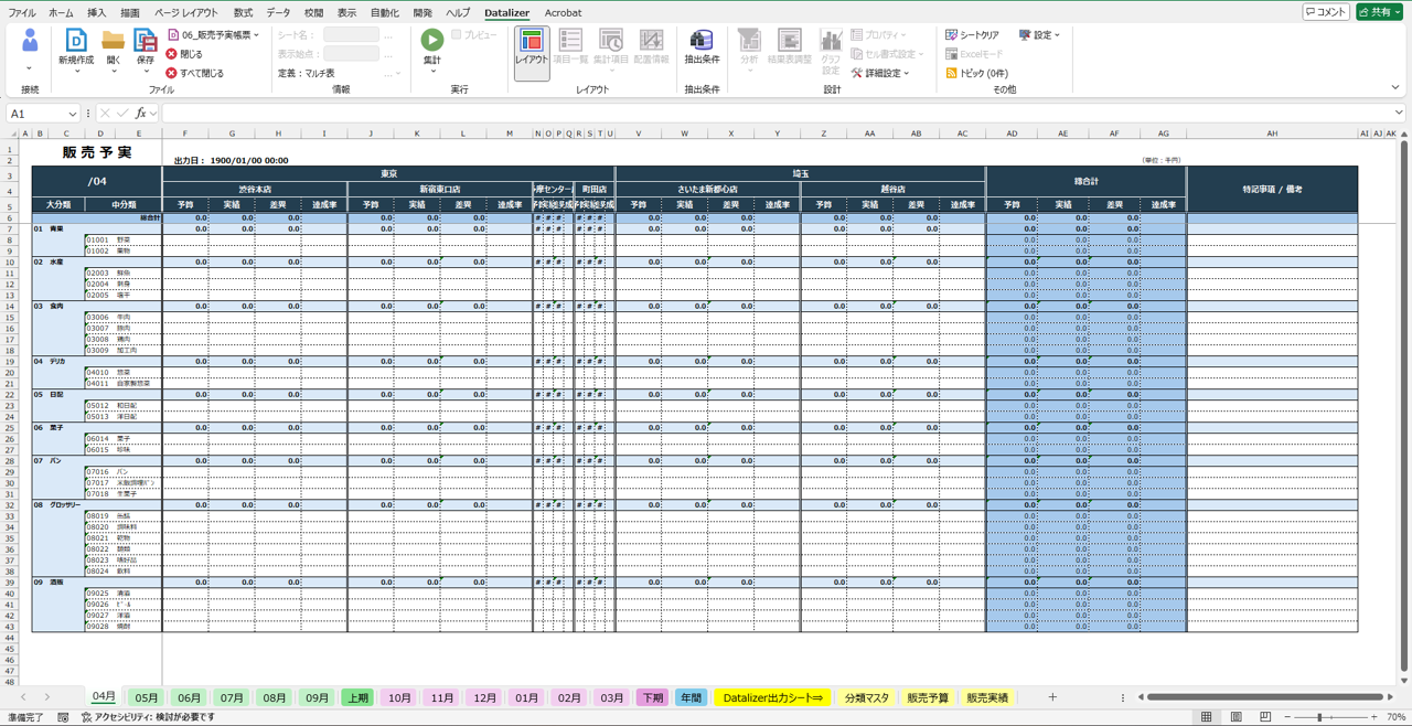 「Dr.Sum Datalizer for Excel」の集計定義をただ出力するだけでは実現できないレイアウトも、Excel関数を用いたテンプレートを活用すれば、定型帳票のように運用することも可能です。