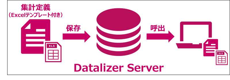 ・Excelテンプレート付きの集計定義をサーバーへ保存し呼び出すイメージ