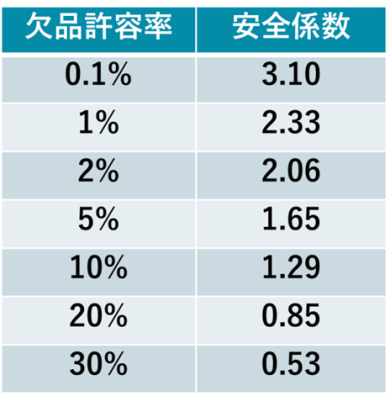 実際の安全在庫の計算の際は、“安全係数” に換算して計算します