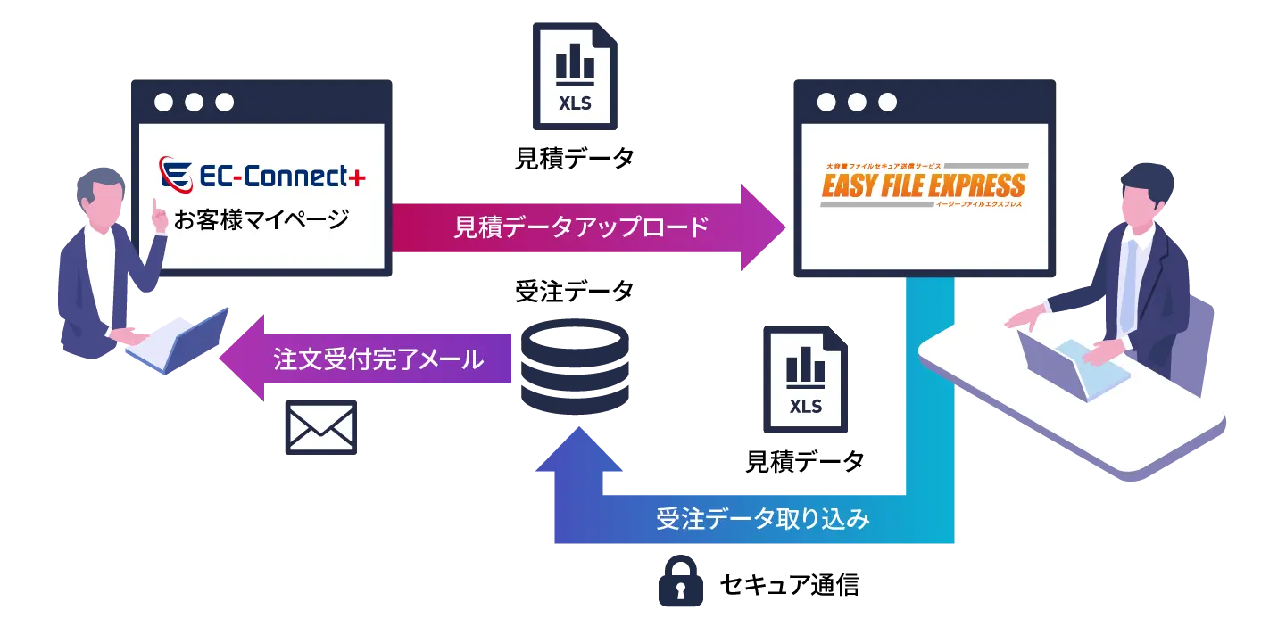 - 当社のファイル転送サービス「EASY FILE EXPRESS」を介すことで、セキュアな環境でのデータ受け渡しとPPAP対策も可能に。