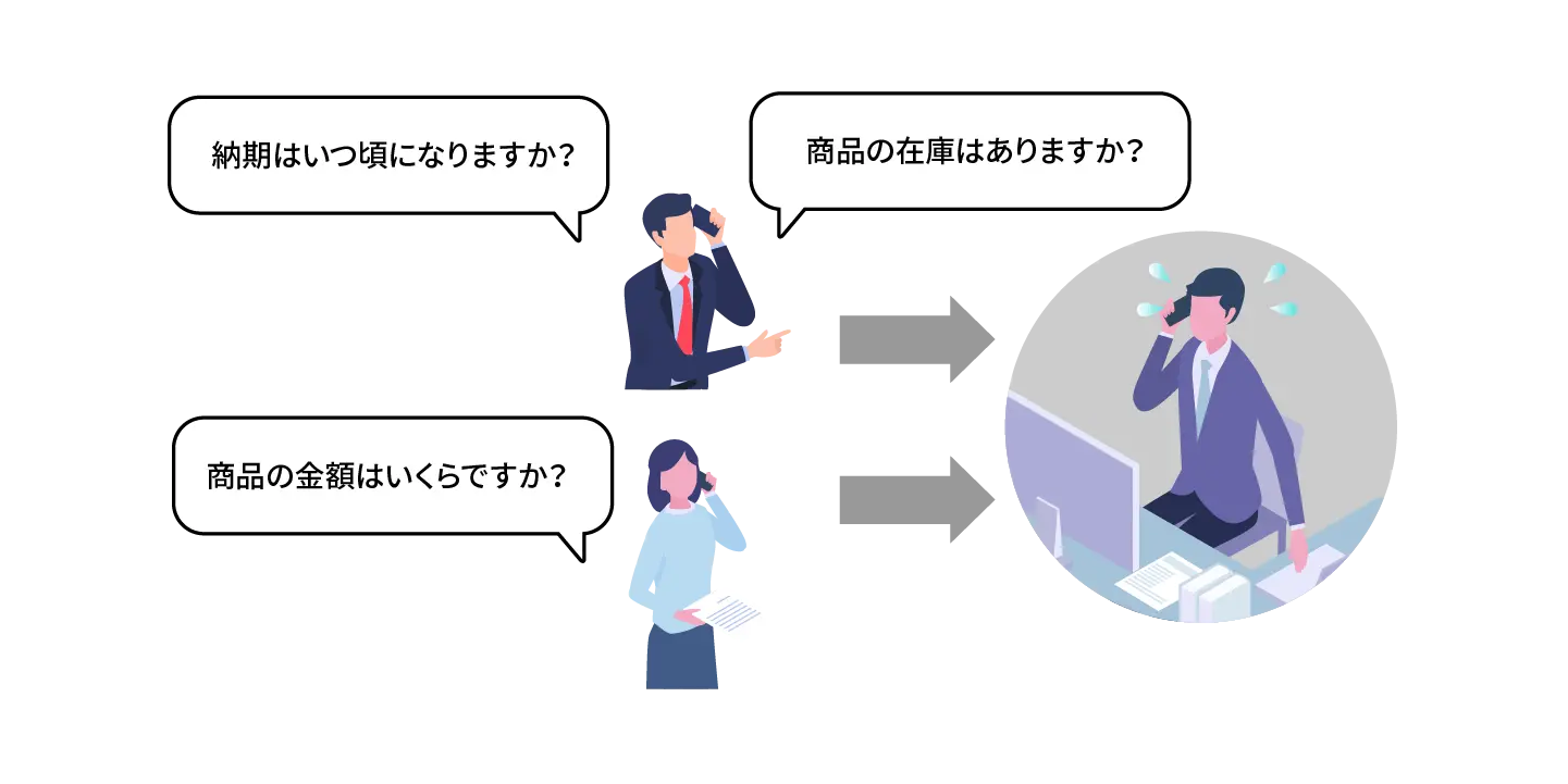 - 商品の在庫確認や金額確認の電話・FAX問い合わせが多い。