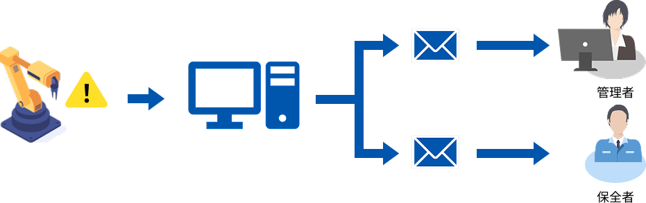FTPでファイルを送信したり、異常メールを送信することで関係者に異常を通知することが可能です